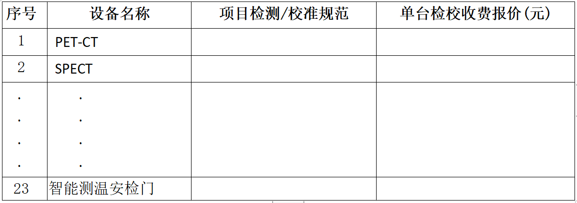 5上面一项目明细中所列设备检校规范及单台检校收费报价(按下面表格填写):