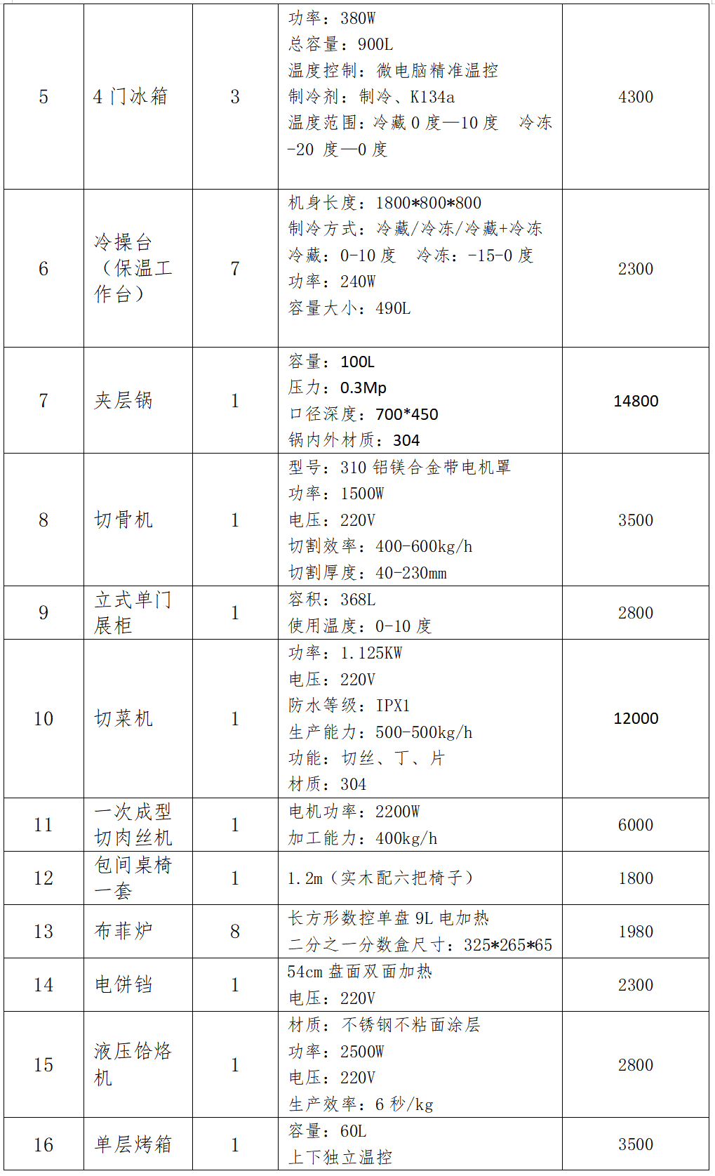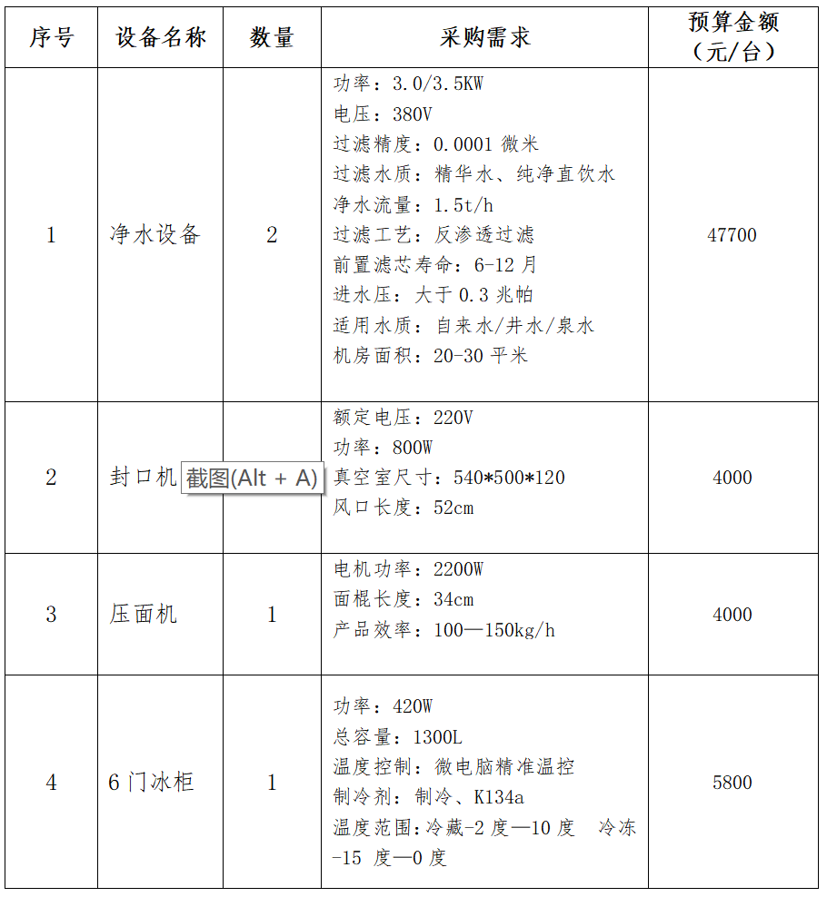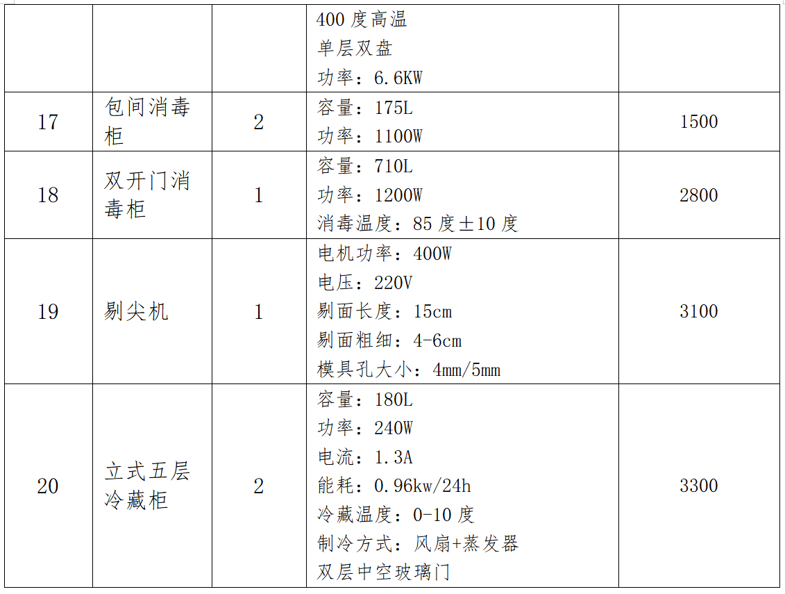 职工食堂设备采购项目