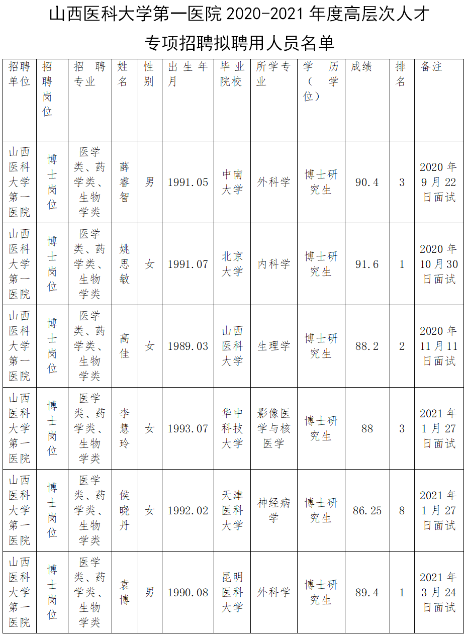 东京热 2020-2021年度高层次人才专项招聘拟聘用人员公示