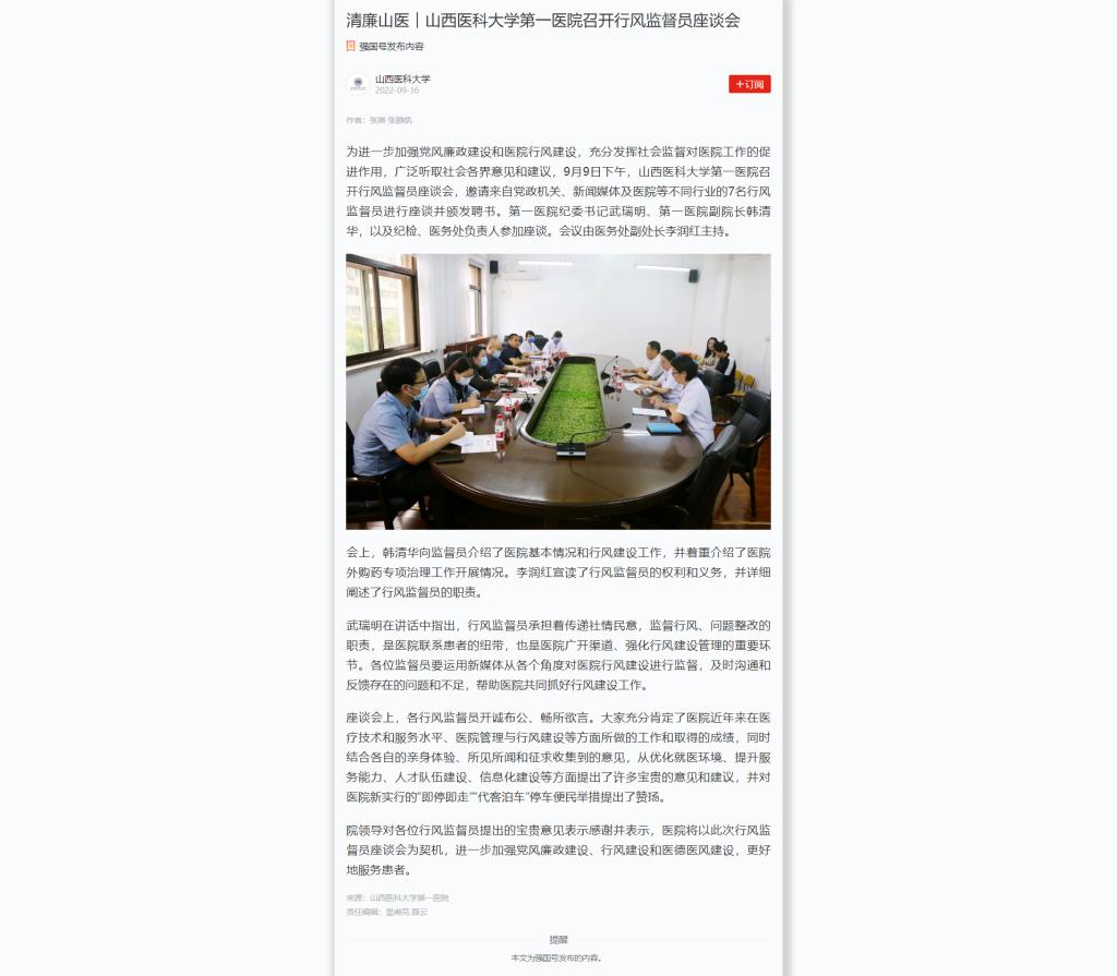 学习强国|清廉山医︱东京热 召开行风监督员座谈会
