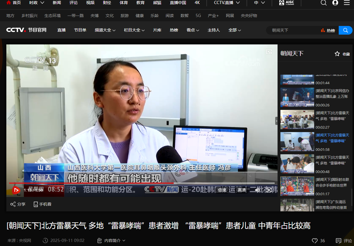 [CCTV 朝闻天下]北方雷暴天气 多地“雷暴哮喘”患者激增 “雷暴哮喘”患者儿童 中青年占比较高