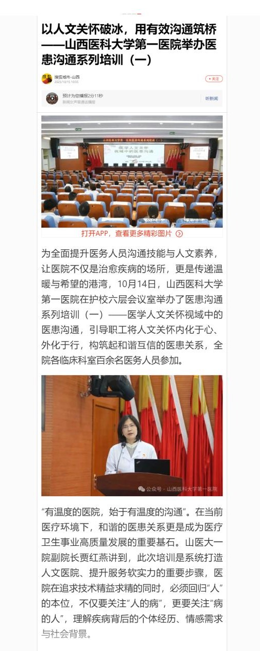 搜狐山西|以人文关怀破冰,用有效沟通筑桥——东京热 举办医患沟通系列培训(一)