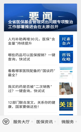 1.点击“山西医保”公众号左下角“服务大厅——我的医保”进入服务大厅。