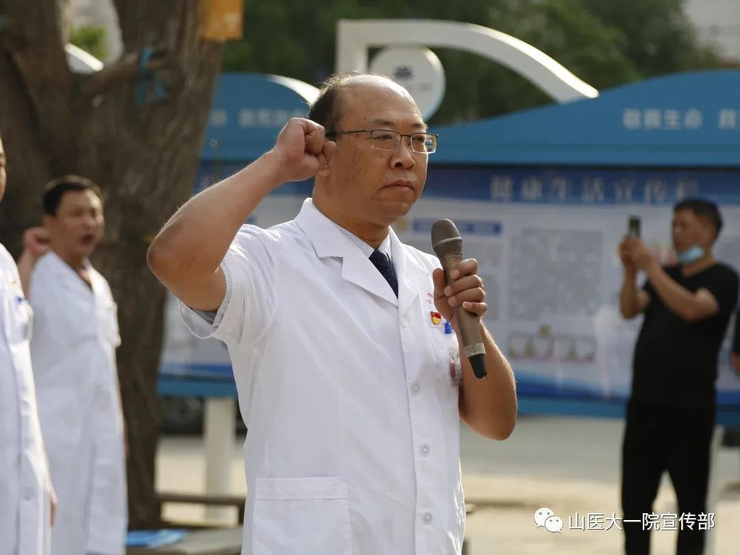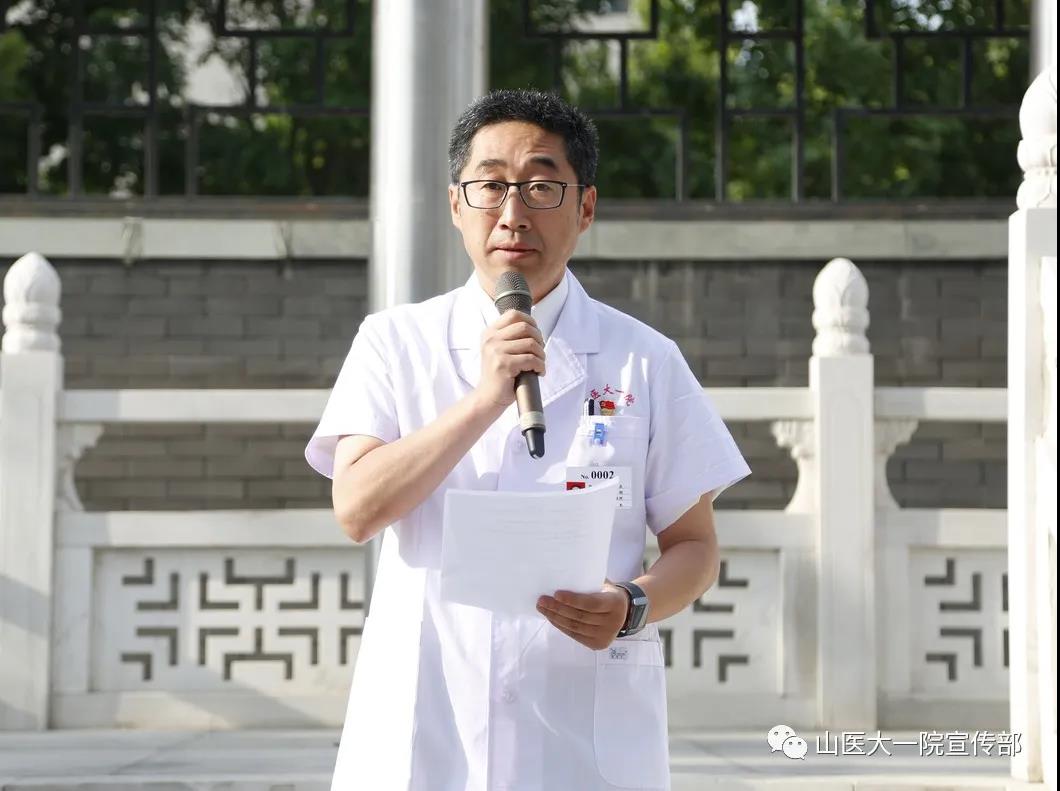 刘春书记在讲话中指出,今年是全面建成小康社会决胜之年、“十三五”规划收官之年、脱贫攻坚决战之年,也是我院改革发展的关键之年,各位党员要以永不懈怠的精神状态和一往无前的奋斗姿态,践行初心使命。要深入学习贯彻习近平新时代中国特色社会主义思想,特别是总书记视察山西的重要指示精神和关于医疗卫生工作的重要论述,用创新理论武装头脑、指导实践、推动工作。要在疫情防控的特殊时期,积极发挥党员先锋模范作用,认真履行党员义务,在与疫情作斗争的同时保证医疗服务质量,以实际行动践行入党誓词,主动接受党组织的考验。要强化责任意识,认真履职尽责,落地落实院党委推进现代医院管理制度建设,推进“136”兴医工程和国家区域医疗中心建设,推进互联网医院建设,推进卫生应急防控体系建设等各项重大决策部署,努力在健康山西发展上率先蹚出一条新路来。他强调,中国共产党已经走过99年光辉而不平凡的历程,即将跨越百年。广大党员要更加紧密地团结在以习近平同志为核心的党中央周围,不忘初心、牢记使命,勤勉敬业、砥砺奋进,以一流的精神状态和一流的工作业绩,为人民生命健康保驾护航。