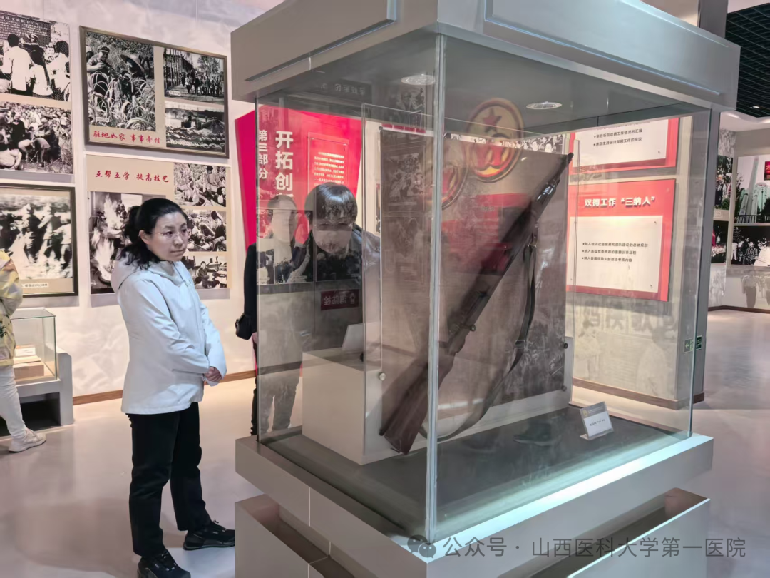 仪式结束后,大家依次参观了山西革命英烈展和太原市双拥展览馆。在山西革命英烈展,大家认真观看了“革命先驱,播火三晋 ”“矢志不渝,献身信仰”“民族脊梁,抗日先锋”“解放山西,泽惠山河”4个部分的解说,重温了高君宇、刘天章等建国前山西籍或牺牲在山西的91位英烈人物和山西女兵连、成成中学师生抗日义勇队等4个英烈群体的英勇事迹,缅怀革命先烈的丰功伟绩。