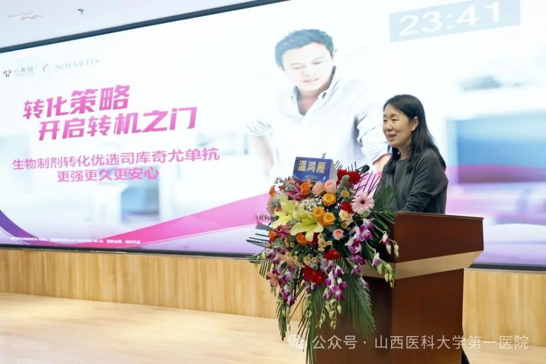 学术交流环节内容丰富,精彩纷呈。温鸿雁主任作为学术论坛执行主席,带来了《转化策略开启转机之门——生物制剂转化优选司库奇尤单抗更强更久更安心》的精彩专题讲座。傅自力主任医师主持学术交流并进行了《老年 RA 的治疗策略》的学术分享。
