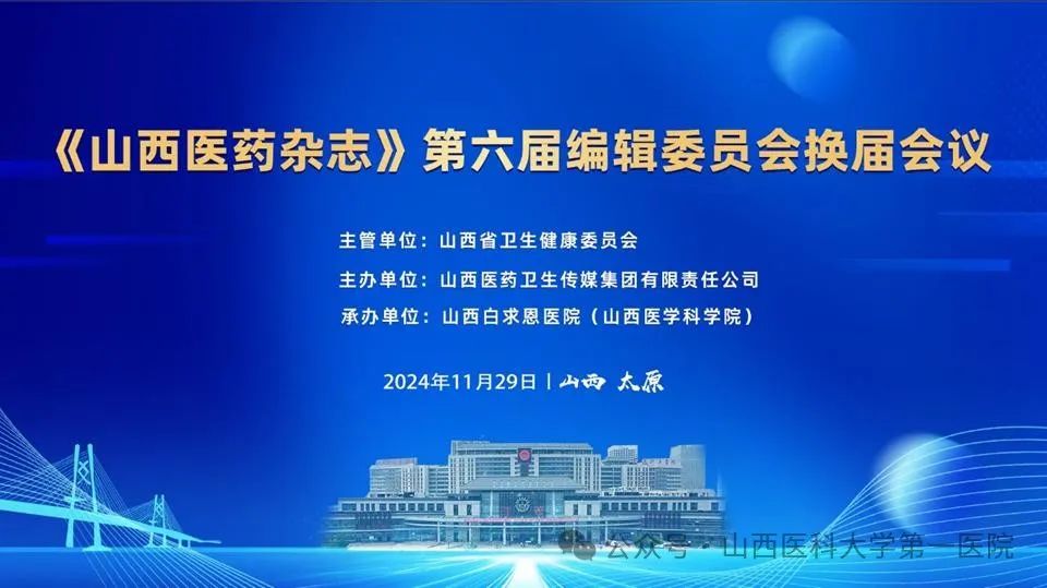 在《山西医药杂志》第六届编委会换届大会上,温鸿雁主任被聘请担任第六届编辑委员会常务委员,闫成兰副主任医师担任编辑委员会委员,程浩主治医师担任编辑委员会青年委员,王凯副主任医师担任审稿专家。