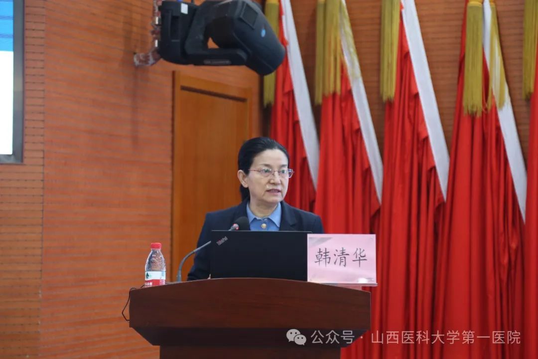 护理部在护校多功能报告厅再次召开“打造有温度的医院”系列培训会,山医大一院副院长韩清华出席并致辞,全院护士长、护理部工作人员、各科室护士骨干及护理学院全体硕士生导师200余人参加。会议由护理部主任商临萍主持。韩清华副院长在致辞中向受邀出席的张大庆教授、何裕民教授、赵明杰教授三位主讲嘉宾表达了热烈的欢迎,对山医大一院基本情况和三位专家的学术造诣进行了介绍。张大庆教授作为我国人文医学教育的开拓者,构建了北大人文课程体系,推动医疗情景沟通指南在86家三甲医院落地;何裕民教授以中医智慧为核心,在肿瘤治疗领域开辟人文航道;赵明杰教授则将《黄帝内经》中的天人合一哲学转化为医患共情场景。她讲到,医院在今年职代会上提出要“打造有温度的医院”和“两心文化”目标,此次培训会便是落实职代会目标的重要举措之一,三位教授的到来为本次培训会注入强大的专业力量,期望通过此次培训,全体医护人员能重新思考医学的真正含义,用人文之光照亮患者就医之路,让医院成为名副其实的“有温度的医院”。