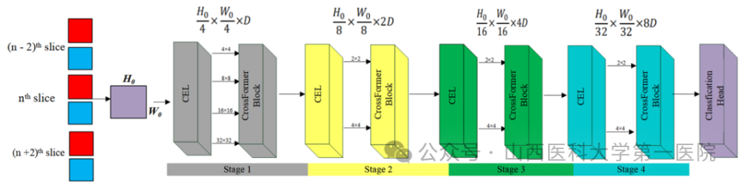 3所附属医院、北京天坛医院和TCGA公共数据库中1185例脑胶质瘤患者的多参数磁共振图像(MRI)和肿瘤基因分子信息,基于多中心、大队列患者数据,首次融合多维度MRI 、跨尺度注意力视觉Transformer(CrossFormer)深度学习和影像组学,实现了IDH野生TERT启动子突变型胶质瘤的术前精准预测和预后评估,这对早期无创预警脑胶质瘤的恶性转化具有重要研究价值,有助于临床对脑胶质瘤进行术前精准诊断、生存预后评估及风险分层管理。