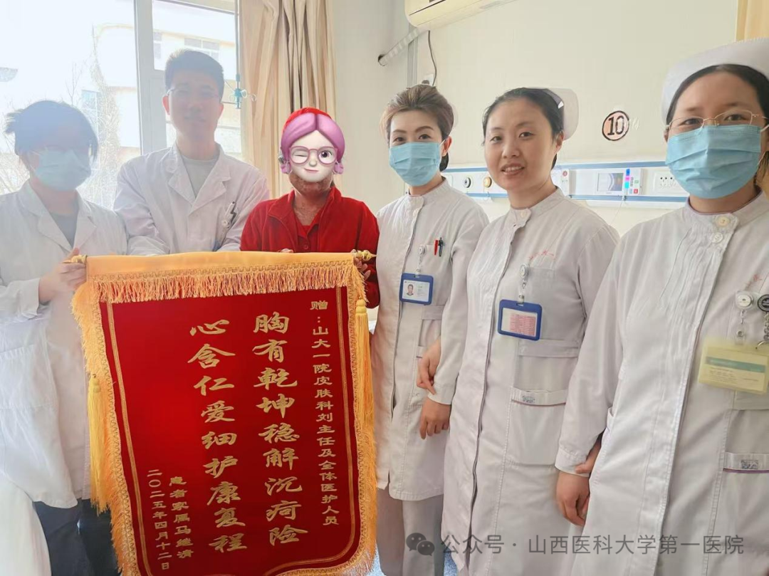 中毒性表皮坏死松解症的平均死亡率高达25%-35%,此次成功救治不仅彰显了山医大一院在重症皮肤疾病的救治能力,更体现了“以患者为中心”的服务理念。每一面锦旗都是患者的“生命勋章”,激励着皮肤科每一位医护在守护健康的道路上继续精益求精,今后将继续以精湛医术为盾、以赤诚仁心为灯,照亮更多患者的康复之路。
