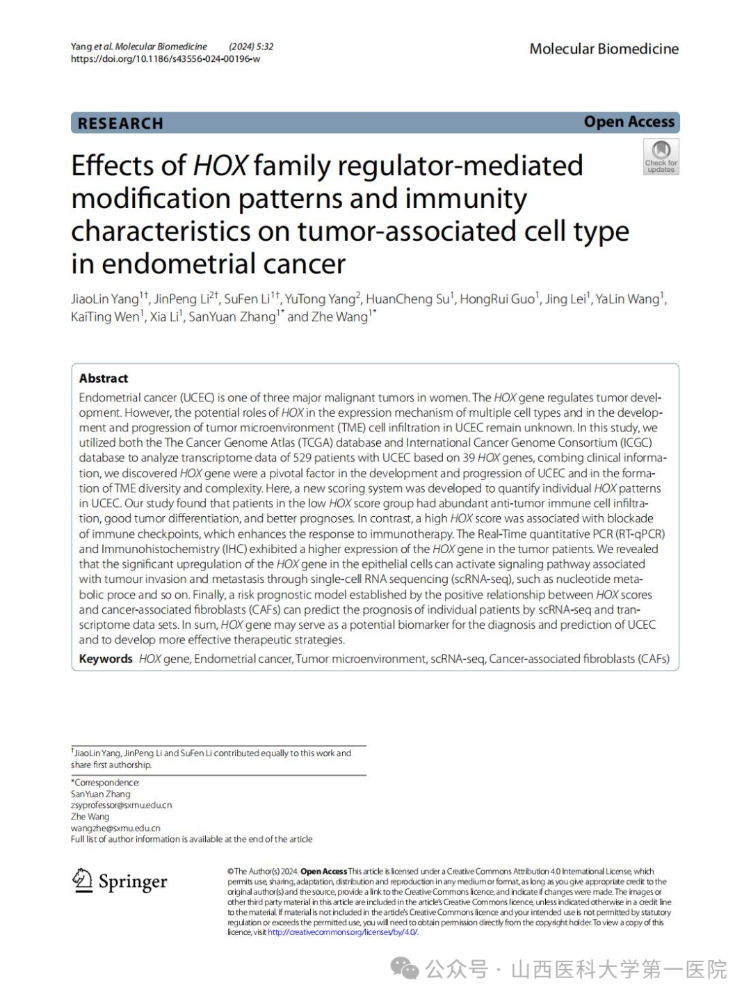 近年来,妇科团队在张三元主任的带领下临床及科研两方面齐头并进,相关研究成果连续发表在中科院2区以上领域的高水平期刊,此次实现中科院1区文章“0”的突破,标志着妇科在产学研、医学转化等方面取得新突破,为多学科交叉提供了新的思路。