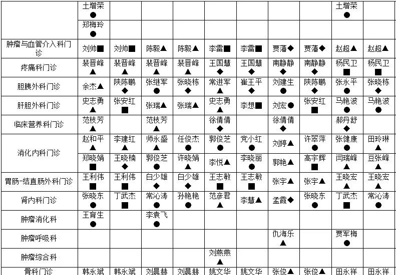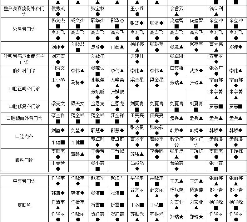 副主任医师▲ 主治医师▇ 住院医师◆