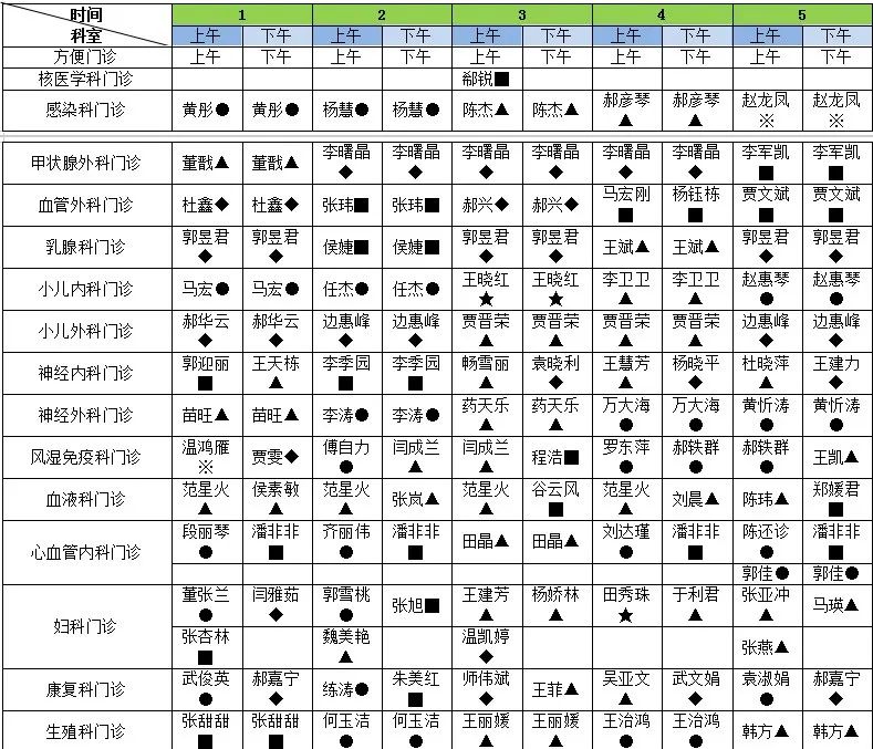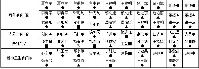 此表仅作参考具体以当日出诊为准