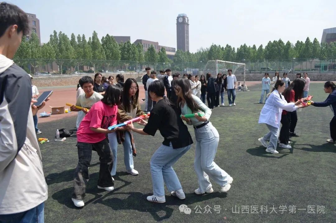 第一临床医学院主办、二级心理工作站承办的心理健康趣味运动会在中都校区操场举办。此次活动邀请山西省学生体育协会户外协会培训部部长张宏俊,通过身心融合的体验式活动,为2023级、2024级康复治疗学全体学生带来了一场兼具心理调适与团队成长的沉浸式体验。
