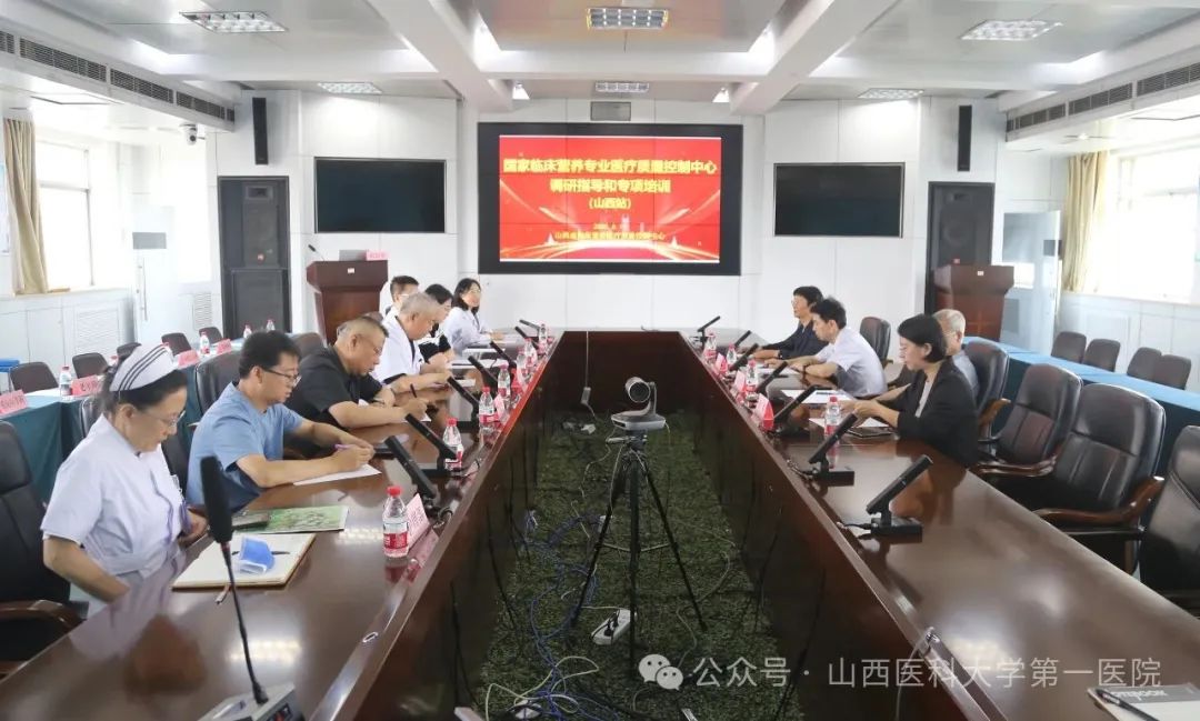 开展调研指导和培训工作,山西省卫生健康委医政处四级主任科员王文玉,山医大一院副院长姜增誉、总会计师李建中、山西省临床营养质控中心主任及临床营养科负责人黄会芳和医务部、信息运维中心、护理部以及多个临床科室负责人参加。会议由黄会芳主持。