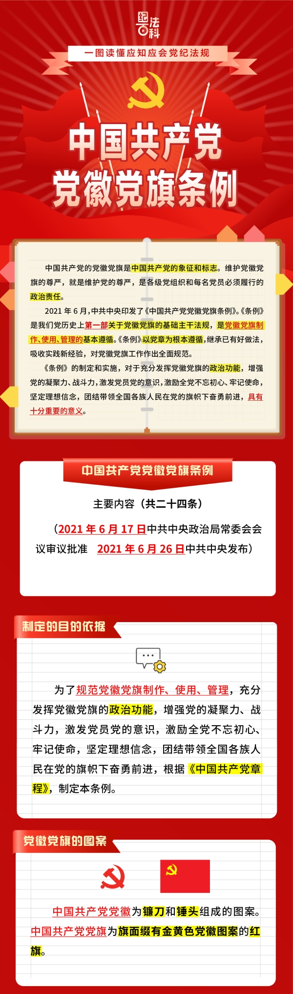 纪法百科丨一图读懂应知应会党纪法规 中国共产党党徽党旗条例