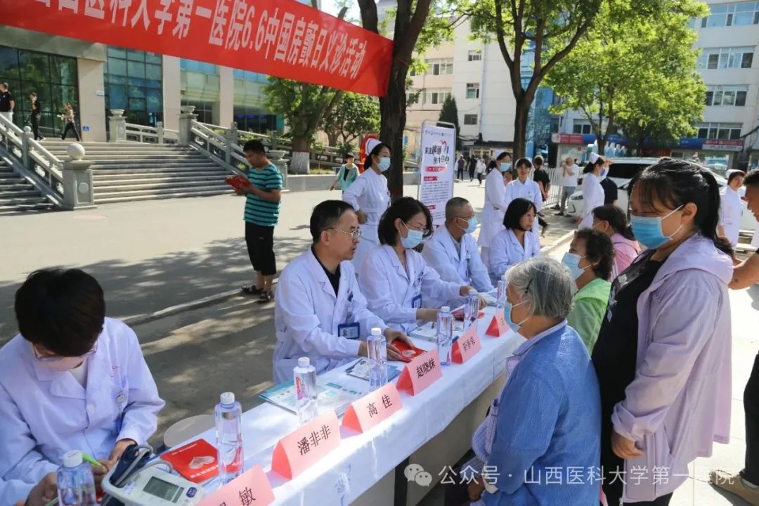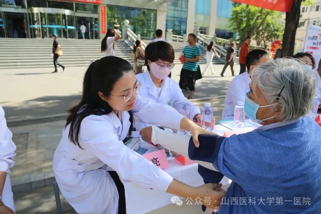 心血管内科负责人靳春荣主任医师带领20余位医护人员组成的专家团队在1号住院楼前小广场开展了义诊活动。