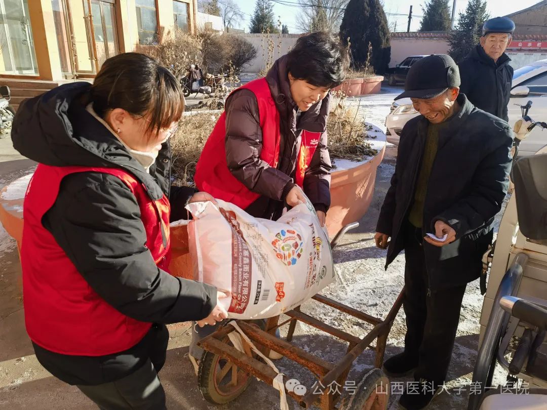 副院长施熠炜和人力资源部部长李红等赴对口支援的繁峙县金山铺乡下浪涧村、汾西县和平镇河达村开展春节前走访慰问活动,为村民们送去新春的问候。
